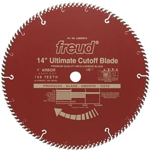 With tooth that start out sharper and ship better side retention, the blade can go longer between sharpening, and will cling up longer--once once more, saving you money and time.What's within the BoxFreud LU85R014 Ultimate Cut-Off Saw Blade with Perma-SHIELD--14-inch diameter, 1-inch arbor, 108-tooth design.Well-Balanced, Anti-Vibration DesignThis Freud blade is precision balanced and pretensioned for more proper reduces beneath heavy masses. It additionally options laser-cut, anti-vibration slots that reduce chatter for a cleaner finish, longer blade lifestyles, and reduced noise while you work. And for the reason that whole blade is laser lower from high-strength steel, that you would be in a position to belief that it will keep secure, flat, and actual, even after prolonged use. Furthermore, this well-balanced anti-vibration design method there's no wish to use add-on stabilizers with this blade.About Freud: A History of Innovative ManufacturingAn industry leader for greater than 50 12 monthss, Freud America, Inc. is a producer and marketer of advanced carbide chopping tools for the woodworking industry. Freud is doubtless considered one of the few manufacturers of woodworking tools on this planet that produces its own MicroGrain Carbide with Titanium, known as TiCo, a high-density mixture of Titanium and Cobalt.. ... Read more Freud LU85R014 14 Inch 108 Tooth ATB Ultimate Cut Off Saw Blade with 1 Inch Arbor and PermaShield Coating