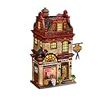 This is where the locals go for a hair-raising new 'do. The "Hair Today, Gone Tomorrow Salon" is a brick building with a spider web design on the door and a vulture peers over the front window. Designed and manufactured exclusively by Department 56.